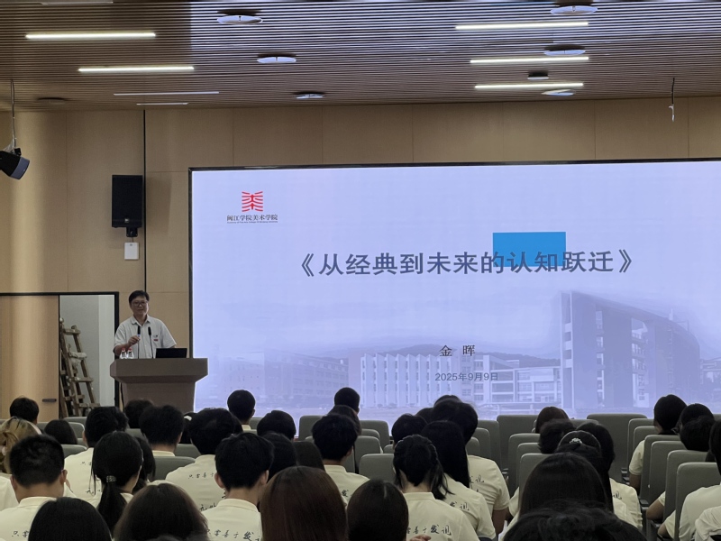 金晖院长以《从经典到未来的认知跃迁》为主题,为2025级新生带来一堂充满哲思的“第一课”。一是扎根与超越:艺术教育的双重使命。院长从福州工艺美术学校的匠人精神讲到西南联大“和而不同”的学术传统,强调“守正不是复制,创新不是颠覆”。通过漆艺与AI艺术的案例对比,阐释技术革新如何为传统艺术注入新生命,并引用“戒定慧”理念,提出“艺术创作需经历技艺锤炼、文化沉淀与思想突破三重境界”。二是破界与融合:面向未来的行动纲领。课程提出“艺术+科技”“艺术+公益”的跨界发展方向,以学院“漆艺文创集市”等实践案例,展示艺术服务社会的可能路径。针对数字艺术浪潮,他鼓励学子:“既要勇敢拥抱AI画笔,更要守护艺术的人文温度”,在虚拟现实等领域开展先锋探索。三是青春誓言:做有筋骨的艺术践行者。院长特别强调乡村振兴、文化出海等国家战略中的艺术担当,“艺术是推动社会进步的引擎”等金句引发共鸣。学院将开放国际交流、跨学科实验室等资源平台,助力学子“以经典为舟,以创新为桨,驶向未来艺术的海域”。