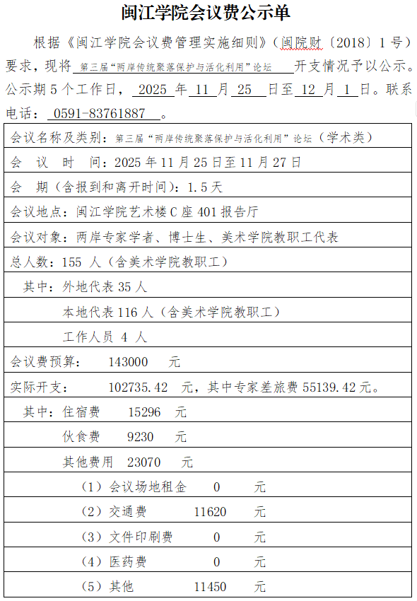 第三届“两岸传统聚落保护与活化利用”论坛开支情况(预算、公示单)