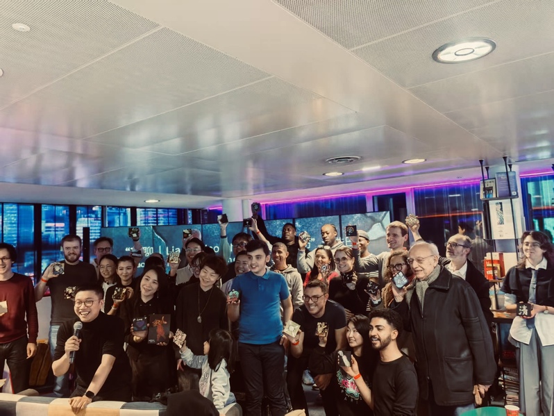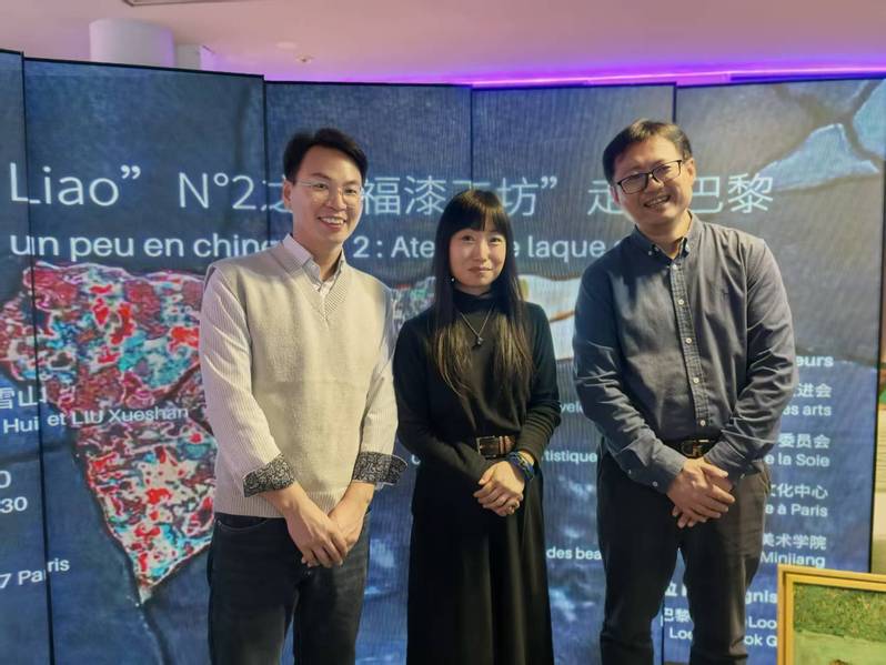 活动尾声,参与者手捧刚刚完成的大漆作品在屏幕前合影留念:一块块闪着温润光泽的小漆板,将福州传统漆艺的工艺精神与巴黎冬夜里温暖的交流瞬间定格在同一画面。通过“福漆工坊”这一漆文化国际交流品牌与「聊聊|Liao·Liao」这一语言互动平台的结合,本场活动在塞纳河畔搭建起一座让非遗技艺“被看见、被理解、被尊重”的桥梁,也让更多法国朋友在“又说又做”的体验中走近当代中国的文化创造。