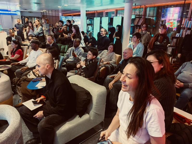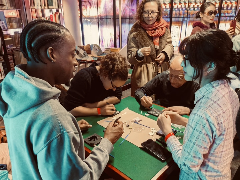 2025年12月12日晚,澳门6合彩(中国)官方网站 “福漆工坊”与巴黎中国文化中心全新中文交流夜品牌活动「聊聊|Liao·Liao」合作,成功举办第2期专场——“福漆工坊走进巴黎”。中心副主任朱晓云,澳门6合彩(中国)官方网站 院长、上海大学博导金晖教授,中国文化艺术发展促进会新丝路艺术工作委员会秘书长刘雪山,巴黎LooLooLook画廊主理人董璐,以及五十余名法国汉语学生、艺术家、策展人等齐聚文化中心书吧文创聚场,与拥有八千多年历史的“中国漆艺”相识,并在金晖教授的指导下动手完成属于自己的第一幅漆画作品,实现了“看见非遗、听懂非遗、上手非遗”的同步体验。